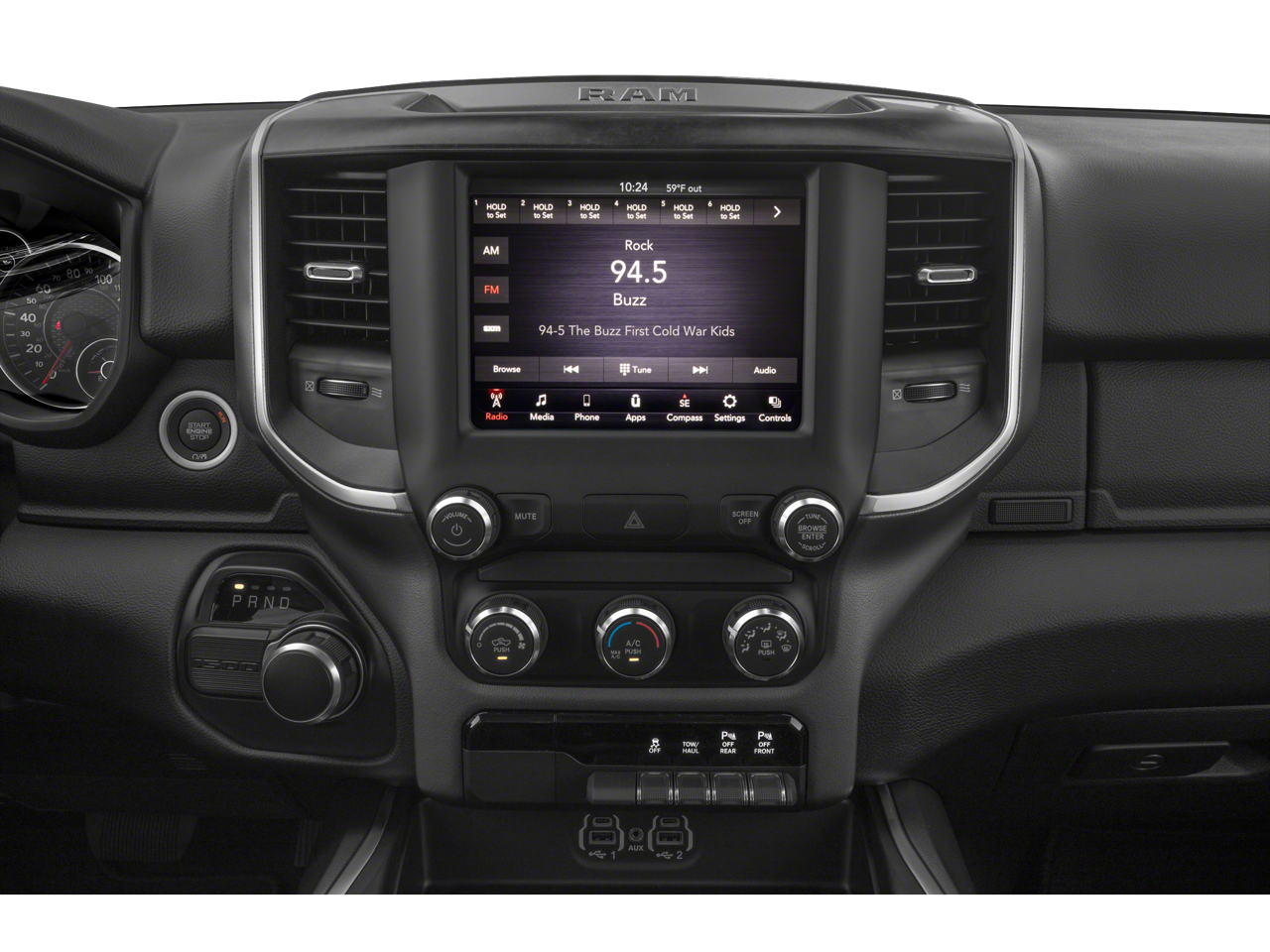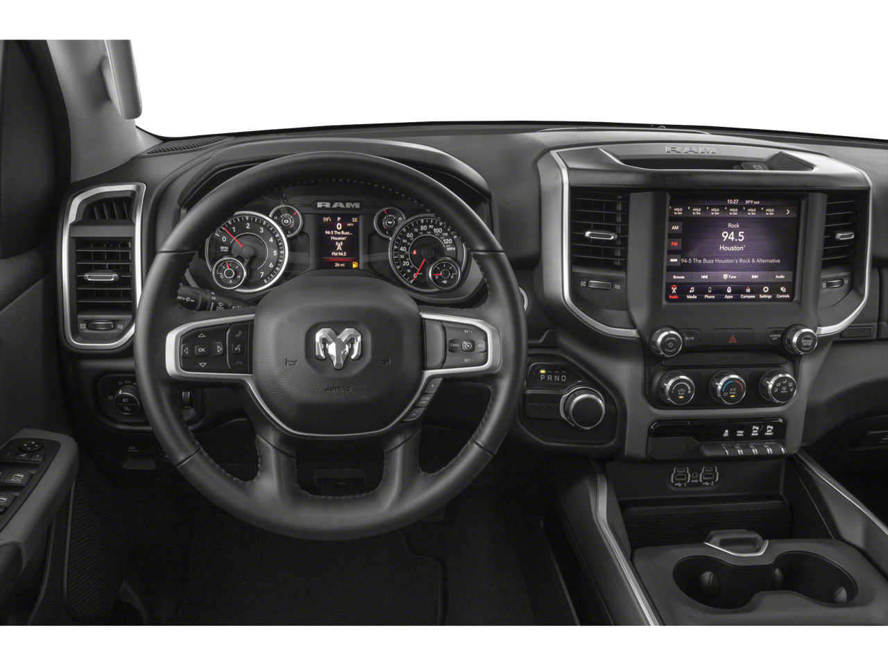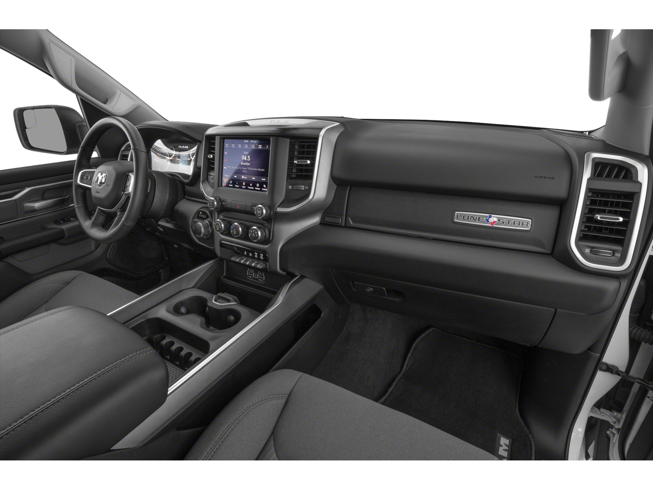 BIG HORN LEVEL 2 EQUIPMENT GROUP Radio: Uconnect 4 w/8.4 Display, Rear Window Defroster, Integrated Center Stack Radio, ParkSense Front/Rear Park Assist w/Stop, Rear View Auto Dim Mirror, Power Adjustable Pedals, Rear Power Sliding Window, Rear Dome w/On/Off Switch Lamp, Glove Box Lamp, Power 4-Way Driver Lumbar Adjust, 115V Auxiliary Rear Power Outlet, Power 8-Way Driver Seat, 2 USB Full Function/Charge Only Media Hub, Heated Front Seats, Heated Steering Wheel, 8.4 Touchscreen Display, Foam Bottle Insert (Door Trim Panel), Class IV Receiver Hitch, Dampened Tailgate, Security Alarm, Power Heated Fold Away Mirrors, Big Horn IP Badge, Remote Start System, SiriusXM Satellite Radio, 400W Inverter, Air Conditioning ATC w/Dual Zone Control, 115V Auxiliary Power Outlet, Cluster 7.0 TFT Color, WHEELS: 20 X 9 ALUMINUM CHROME CLAD, ENGINE: 5.7L V8 HEMI MDS VVT Active Noise Control System, 180 Amp Alternator, Heavy Duty Engine Cooling, GVWR: 7,100 lbs, Dual Rear Exhaust w/Bright Tips, Hemi Badge, SPORT APPEARANCE PACKAGE Tires: 275/55R20 OWL All Season, Exterior Mirrors w/Supplemental Signals, Power Heated Fold-Away Mirrors, Body Color Door Handles, Exterior Mirrors Courtesy Lamps, Auto Dim Exterior Driver Mirror, Exterior Mirrors w/Memory, Grille B/Color Outline 1 Texture 2, Black Interior Accents, Power-Folding Mirrors, Body Color Front Bumper, Body Color Rear Bumper w/Step Pads, QUICK ORDER PACKAGE 25Z BIG HORN/LONE STAR Engine: 5.7L V8 HEMI MDS VVT, Transmission: 8-Speed Automatic (8HP75), Steering Wheel Mounted Audio Controls, TRANSMISSION: 8-SPEED AUTOMATIC (8HP75), BLACK, DELUXE CLOTH BUCKET SEATS Power 8-Way Driver Seat, Center Console Parts Module, Bucket Seats, Manual Adjust 4-Way Front Passenger Seat, Full Length Floor Console, Power 4-Way Driver Lumbar Adjust.