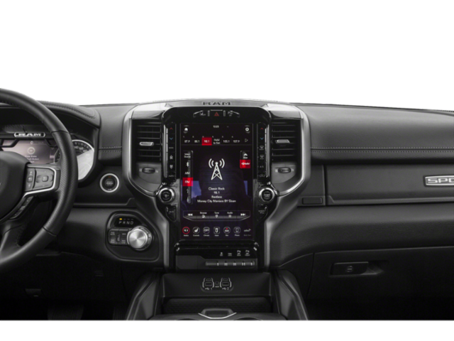 LEVEL 2 EQUIPMENT GROUP Remote Start System, Rear Window Defroster, Rain-Sensing Windshield Wipers, Auto-Dimming Rearview Mirror, Park-Sense Front & Rear Park Assist, Power Adjustable Pedals, 115V Rear Auxiliary Power Outlet, Rear Media Hub w/2 USB Ports, Rear Underseat Compartment Storage, Remote Proximity Keyless Entry, Universal Garage Door Opener, Front Heated Seats, Heated Steering Wheel, Door Trim Panel Foam Bottle Insert, Single-Disc Remote CD Player, Security Alarm, Sun Visors w/Illuminated Vanity Mirrors, ALPINE LEATHER & SOUND GROUP 9 Alpine Speakers w/Subwoofer, Radio: Uconnect 4C Nav w/12 Display, A/C w/Dual-Zone Automatic Temperature Control, 5-Year SiriusXM Travel Link Subscription, SiriusXM Travel Link, POWER DUAL-PANE PANORAMIC SUNROOF Premium Overhead Console, LED Dual Dome Reading Lamps, Overhead LED Lamps, ENGINE: 5.7L HEMI VVT V8 W/FUELSAVER MDS (STD), SPRAY-IN BEDLINER, QUICK ORDER PACKAGE 25L SPORT Engine: 5.7L HEMI VVT V8 w/FuelSaver MDS, Transmission: 8-Speed Automatic, Google Android Auto®, Instrument Cluster, Body-Colour Door Handles, Rear Wheel Spats, Front Heavy-Duty Shock Absorbers, Overhead LED Lamps, Heated Exterior Mirrors, Auto-Dimming Exterior Driver Mirror, Body-Colour Rear Bumper w/Step Pads, Apple CarPlay® Capable, Premium Overhead Console, Sport Group, Full-Size Temporary Use Spare Tire, RAMs Head Badge, Exterior Mirrors w/Turn Signals, Power Heated Manual Folding Mirrors, Exterior Mirrors w/Courtesy Lamps, Rear Heavy-Duty Shock Absorbers, Automatic High-Beam Headlamp Control, LED Dome Lamp w/On/Off Switch, Electric Shift-On-Demand Transfer Case, Exterior Mirrors w/Memory Settings, Active Front Air Dams, Body-Colour Grille, Front Wheel, BLACK, LEATHER-FACED FRONT VENTED BUCKET SEATS Front Heated Seats, Heated Steering Wheel, Power 8-Way Adjustable Front Seats, Power 4-Way Front Passenger Lumbar Adjust, Front Ventilated Seats, TRANSMISSION: 8-SPEED AUTOMATIC (STD), ANTI-SPIN DIFFERENTIAL REAR AXLE, RADIO: UCONNECT 4C NAV W/12 DISPLAY Google Android Auto®, SiriusXM Traffic, USB Mobile Projection, Disassociated Touchscreen Display, HD Radio, For Details, Visit DriveUconnect.ca, Integrated Centre Stack Radio, 12 Touchscreen, GPS Navigation, 5-Year SiriusXM Traffic Subscription, SiriusXM w/360L On-Demand Content, Apple CarPlay® Capable, CLASS IV RECEIVER HITCH.