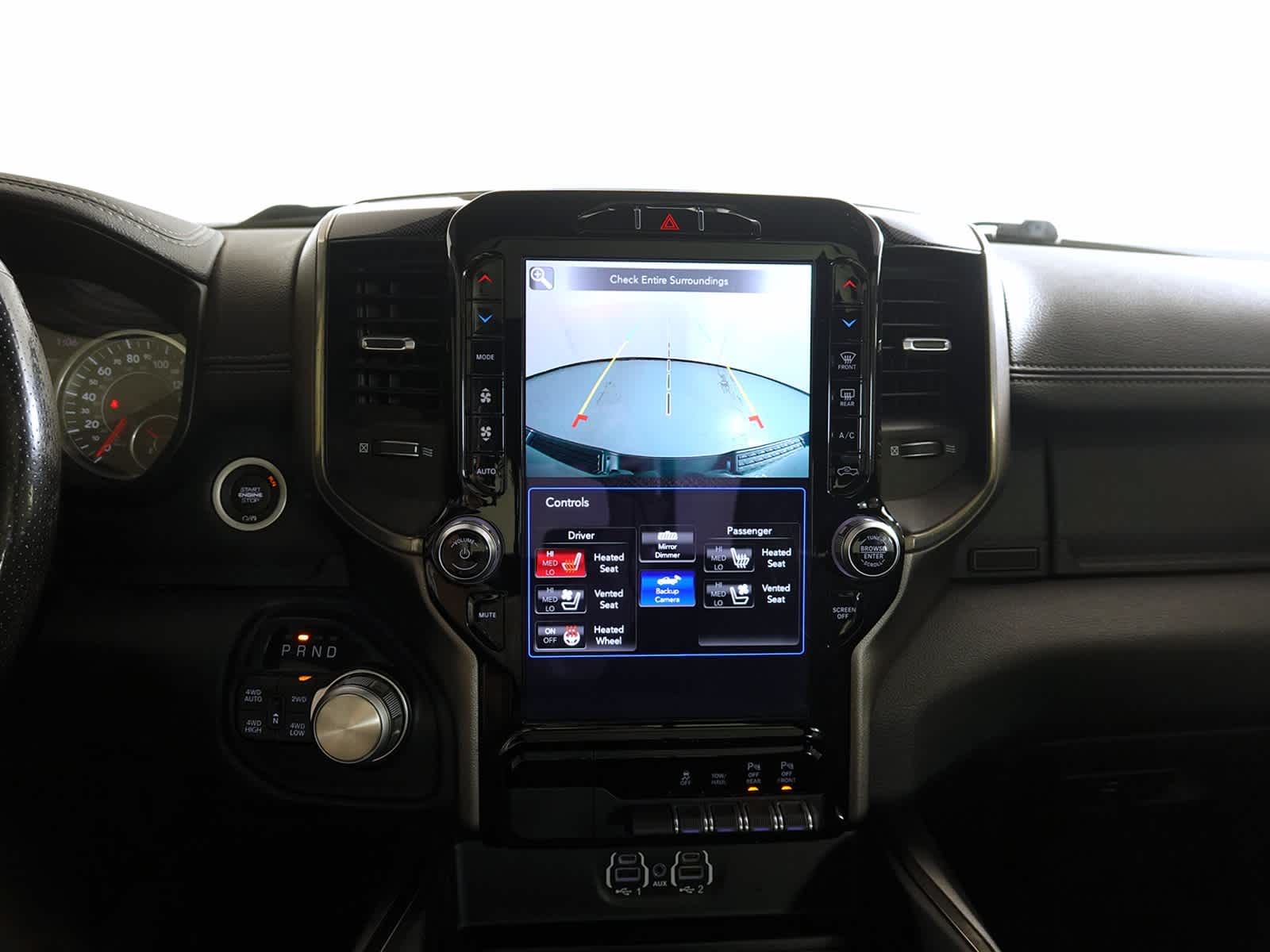 LEVEL 2 EQUIPMENT GROUP W/2_L Remote Start System, Rear Window Defroster, Rain-Sensing Windshield Wipers, Auto-Dimming Rearview Mirror, Park-Sense Front & Rear Park Assist, Power Adjustable Pedals, A/C w/Dual-Zone Automatic Temperature Control, 115V Rear Auxiliary Power Outlet, Rear Media Hub w/2 USB Ports, Rear Underseat Compartment Storage, Remote Proximity Keyless Entry, Universal Garage Door Opener, Front Heated Seats, Heated Steering Wheel, Door Trim Panel Foam Bottle Insert, Security Alarm, Sun Visors w/Illuminated Vanity Mirrors, SPRAY-IN BEDLINER, QUICK ORDER PACKAGE 25L SPORT Engine: 5.7L HEMI VVT V8 w/FuelSaver MDS, Transmission: 8-Speed Automatic, Instrument Cluster, Body-Colour Door Handles, Rear Wheel Spats, Overhead LED Lamps, Heated Exterior Mirrors, Power 8-Way Adjustable Driver Seat, Auto-Dimming Exterior Driver Mirror, Premium Overhead Console, Sport Group, Full-Size Temporary Use Spare Tire, RAMs Head Badge, Exterior Mirrors w/Turn Signals, Body-Colour Power Heated Power Fold Mirrors, Exterior Mirrors w/Courtesy Lamps, Rear Heavy-Duty Shock Absorbers, Automatic High-Beam Headlamp Control, LED Dome Lamp w/On/Off Switch, Electric Shift-On-Demand Transfer Case, Exterior Mirrors w/Memory Settings, Active Front Air Dams, Black Grille w/Body Colour Surround, Body-Colour Exterior Mirrors, Front Wheel Spats, Power Folding, BLACK, LEATHER-FACED FRONT VENTED BUCKET SEATS Front Heated Seats, Heated Steering Wheel, Power 4-Way Front Passenger Lumbar Adjust, Power 8-Way Adjustable Front Seats, Front Ventilated Seats, TRANSMISSION: 8-SPEED AUTOMATIC (STD), ENGINE: 5.7L HEMI VVT V8 W/FUELSAVER MDS 220 Amp Alternator (STD), POWER DUAL-PANE PANORAMIC SUNROOF Premium Overhead Console, LED Dual Dome Reading Lamps, Overhead LED Lamps, 9 ALPINE SPEAKERS W/SUBWOOFER, RADIO: UCONNECT 4C NAV W/12 DISPLAY Google Android Auto®, SiriusXM Traffic, USB Mobile Projection, Disassociated Touchscreen Display, HD Radio, For Details Visit DriveUconnect.ca, Integrated Centre Stack Radio, 12 Touchscreen, A/C w/Dual-Zone Automatic Temperature Control, 5-Year SiriusXM Travel Link Subscription, GPS Navigation, 5-Year SiriusXM Traffic Subscription, SiriusXM Travel Link, 4G LTE Wi-Fi Hot Spot, SiriusXM w/360L On-Demand Content, Apple CarPlay® Capable, LED Footwell Lighting, BLIND-SPOT & CROSS-PATH DETECTION, CLASS IV RECEIVER HITCH.